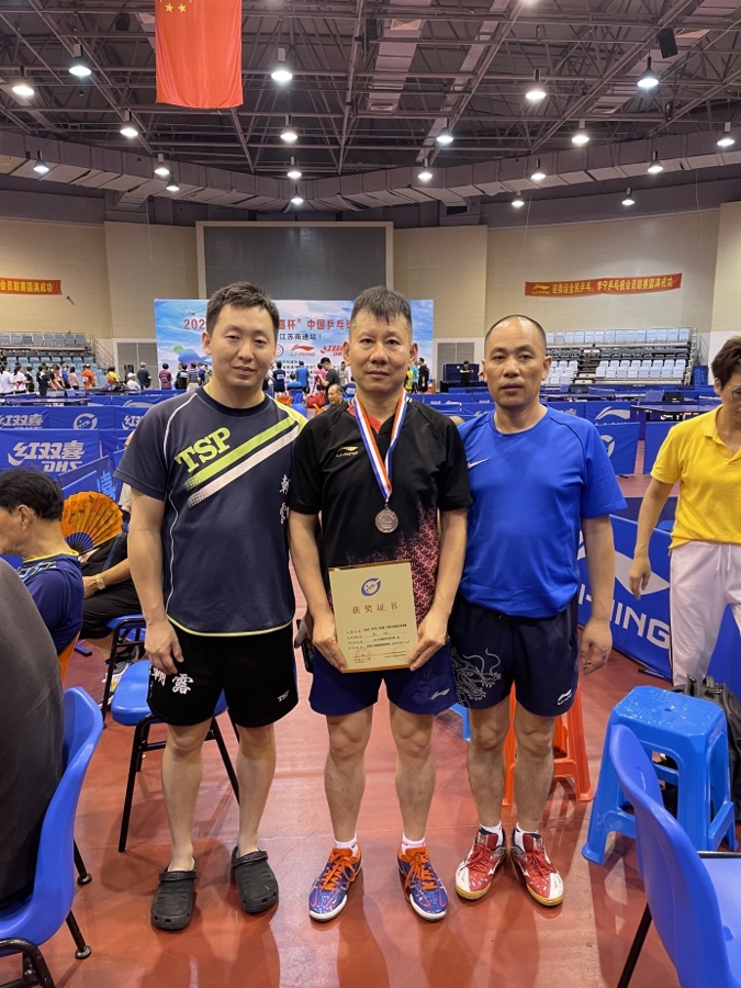 尽管在市区工作,但彭欣从未考虑过搬离曹路。“这里有各种赛事,打球氛围好,更难割舍的是一群志同道合的球友们。”2013年起,彭欣开始以志愿者身份参与朝露体育俱乐部的日常工作。2019年老领队退休,他正式接过了领队的担子。彭欣自己也是业余高手,5岁就开始打球,曾参加各级别赛事。“全国有名次的,我还有证书呢。”57岁的彭欣依然活跃在赛场上,但已悄然完成角色转变。从球友到领队,从参与者到组织者,彭欣把自己对乒乓球的热爱,化作了对曹路的一份责任与坚守。