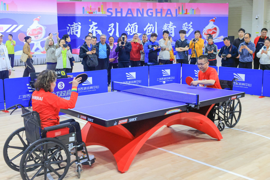在日前举行的浦东新区选拔赛开幕式上,两位轮椅乒乓健将的台前展示成为全场的焦点。他们是浦东新区残联乒乓球代表队的运动员——冯秀兰与金学明。